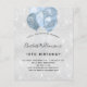 Para um aniversário de 18 anos (ou qualquer idade) elegante. Um fundo com aparência metálica prateada falsa. Decorado com pó brilhante prateado falso e balões azuis. Personalize e adicione um nome, idade e detalhes da festa. O nome é escrito com uma fonte de letra manuscrita