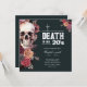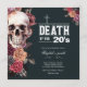R.I.P. para a década de decadência! Este na moda floral faz o convite ideal para um aniversário de 30 anos ou você pode personalizar o texto facilmente por mais uma década (40º, 50º, etc.). Apresentando um crânio gótico com damasco pálido, flores pretas e burgundy sobre fundo preto profundo. Texto "Morte aos 20 anos" (personalizável)