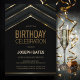Um convite de aniversário preto-na moda e-ouro geométrico para adultos. Adequado para qualquer idade.