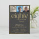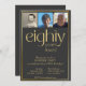 Oitenta anos adoraram. Convite de aniversário preto e ouro elegante com três fotos. Surpreenda seu amado com uma festa especial celebrando seus 80 anos de vida.