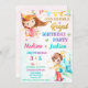 Junte-se a nós para uma festa de aniversário real! Convite de aniversário da Princesa Mágica e Príncipe Watercolor convite à granizo Convite mágico para aniversário. Convide seus amigos com este convite para o tema real da aquarela fofa! Este convite de aniversário princesa e princesa apresenta uma princesa feliz em vestidos cor-de-rosa, legal príncipe, castelo azul, terra colorida no topo, algumas flores e arco-íris ao redor. Simplesmente edite este menu de personalização fácil de usar modelo para torná-lo especial.