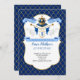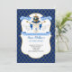 Convite de aniversário do Príncipe Real em azul e ouro com uma coroa.