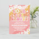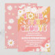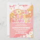 Celebre o dia especial dos seus pequenos com este convite de aniversário retrô e descolado! Com listras onduladas divertidas em rosa, laranja e pêssego com margaridas, corações, borboletas e sinais de paz, este design captura o espírito divertido dos anos 70. Perfeito para festas infantis, este convite personalizável adiciona um toque colorido e nostálgico, mantendo os detalhes claros e atraentes. Faça o aniversário do seu filho ser inesquecível com este vibrante souvenir inspirado nos hippies.