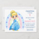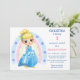 Este convite de aniversário de princesa bonitinho é apropriado para meninas até os sete ou oito anos de idade. A frente apresenta uma princesa adorável vestida de vestido azul brilhante. Atrás dela está um arco-íris azul, rosa e amarelo decorado com corações. Seu texto personalizado está rosa e azul no lado direito. Há muito espaço para sua própria informação, e se você não precisa de um campo específico, basta vazio-lo. A parte de trás do convite tem um padrão de corações cor-de-rosa. Sua pequena princesa vai adorar!