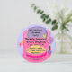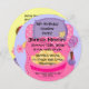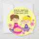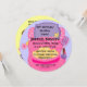 Uma festa de pijama adorável ou um convite de aniversário para dormir em forma circular, redonda, com muito rosa, lilás e amarelo com bolinhas e flores, duas meninas numa festa de pipoca com uma grande taça de pipoca, saco de dormir e áreas que você pode facilmente personalizar com as informações da festa de pijama de aniversário do seu filho!