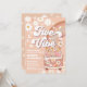 Celebre com um estilo descolado com este convite de aniversário inspirado nos anos 60 retrô, apresentando um fundo cor de pêssego, margaridas brancas, estrelas, borboletas e um design de arco-íris. Uma van rosa vintage com um símbolo da paz define o tom para paz, amor e diversão. Perfeito para aniversários de crianças, este convite personalizável adiciona um clima lúdico e nostálgico à sua celebração. Personalize com detalhes da festa e crie uma lembrança única que os convidados vão adorar.