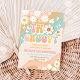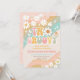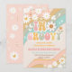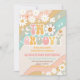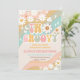 Celebre com estilo este convite de aniversário retrô com listras onduladas pastéis, margaridas divertidas, sinais de paz, borboletas e estrelas. Perfeito para uma festa temática dos anos 60 ou 70, este design colorido define o tom para paz, amor e diversão. Personalize com os detalhes da sua festa para criar um convite único que os convidados adorarão. Ideal para aniversários de crianças, festas de piscina ou qualquer celebração alegre com um clima vintage.