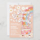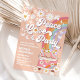 Celebre com um estilo psicodélico com este convite de aniversário retrô hippie que apresenta um arco-íris pastel, van da paz, margaridas e ícones retrô divertidos. Perfeito para um primeiro aniversário ou qualquer celebração divertida, este design alegre define o tom para paz, amor e alegria. Personalize com os detalhes da sua festa para criar um souvenir único que os convidados vão adorar. Ideal para eventos boho, flower power ou inspirados no vintage, este convite adiciona um toque caprichoso ao seu dia especial.