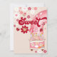 Celebre o primeiro aniversário dos seus pequenos com estilo retrô usando este convite "Doce Um". Com uma alegre van rosa decorada com flores, sinais de paz e detalhes em arco-íris, este design divertido é rodeado por margaridas, corações, morangos e notas musicais para uma atmosfera caprichosa dos anos 60. Perfeito para uma festa de aniversário divertida e colorida, este convite mistura nostalgia com charme moderno para deliciar os convidados. Personalize facilmente para o seu evento e faça da sua celebração algo inesquecível com este vibrante tema retrô.