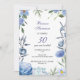 Convite de aniversário romântico de flores azuis
