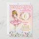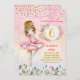 Uma bela bailarina a olhar para ti. O plano de fundo tem uma falha no ouro no topo. Um convite para comemorar o doce aniversário de sua garota.