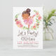 Uma bailarina rosa e castanha/convite de festas de primeiro aniversario de dançarina balé. Fundo de aquarela e striped para trás.