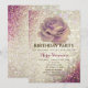 Convite de aniversário rosa brilhante e dourado feminino, moderno e único com flor de rosa em aquarela elegante e caligrafia moderna.