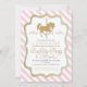 Celebre um marco mágico com o nosso Convite de Aniversário Cavalo de Carrossel Rosa Dourado - um design atemporal inspirado em contos de fadas, perfeito para um primeiro aniversário doce e elegante ou uma celebração temática de carrossel.