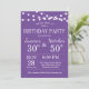 Convite de aniversário Conjunto Adulto. Co-Aniversário do Partido Combinado. Fundo Roxo. Homem ou Mulher, Menino ou Menina Convidam. Luzes de Corda. 13 15 16º 18º 20 21rua 30 40º 50º 60º 80 de 70 100º, qualquer idade. Para mais personalização, clique no botão "Personalizar" e use nossa ferramenta de design para modificar este modelo.