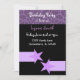 Um design legal com uma borda roxa com um padrão de pele de girafa. Os cartazes com estrelas o acendem. Personalize com todas as informações de festa de aniversário, conforme desejado.