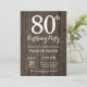 Convite de Aniversário para 80 Russo. Fundo Rustic Wood. Vintage Retro Birthday. Aniversário Adulto. Homens ou Mulheres no Dia Convidam. 13 15 16º 18º 20 21rua 30 40º 50º 60º 80 de 70 100º, qualquer idade. Para mais personalização, clique no botão "Personalizar" e use nossa ferramenta de design para modificar este modelo.
