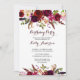 Cartões de Convite de aniversário de estilo boêmico, com ilustração aquosa de peões e rosas de cor viva, vermelha e rosa, com sotaque de penas. Isto é perfeito para o outono | Ocorrências de outono e inverno. Itens correspondentes também estão disponíveis. Clique no botão "Personalizar" para alterar fontes, tamanhos e cores.