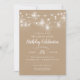 Barato de convites de festas de aniversários impressos personalizados com um modelo fácil de usar para personalização. Este design de chic rústico apresenta cadeias de luzes brilhantes de cordas e frascos de pedras em um fundo falso de papel kraft. Personalize o convite com os detalhes do seu janto de aniversário ou personalize o texto a ser usado para qualquer evento. Use as ferramentas de design para adicionar fotos e personalizar as fontes de texto e as cores para criar um design único para a celebração de seu aniversário.