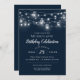 Barato de convites de festas de aniversários impressos personalizados com um modelo fácil de usar para personalização. Este design de chic rústico apresenta cadeias de luzes brilhantes de cordas e frascos de pedras em um fundo azul marinho escuro. Personalize o convite com os detalhes do seu janto de aniversário ou personalize o texto a ser usado para qualquer evento. Use as ferramentas de design para escolher qualquer cor de fundo, adicionar fotos e personalizar as fontes de texto e as cores para criar um design único para a celebração do seu aniversário.