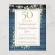 Com delicadas ilustrações em aquarela de greenery de jardim country e luzes de corda bonitas em um fundo de painéis de madeira azul, este convite rústico chique pode ser personalizado com as informações da sua celebração de aniversário de 50 anos. Criado por Thisisnotme©