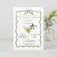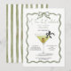 Celebre com estilo com este chique convite de aniversário Martini “A Tini Bit Older”. Com uma ilustração elegante de um copo de martini com detalhes de azeitona e uma moldura de laço elegante, este design é perfeito para uma celebração de aniversário sofisticada com tema de coquetel.