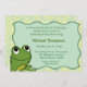 Convite de aniversário verde-sapo com fundo de folha. Personalize com os detalhes do seu partido.