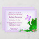 Um convite para Festa de aniversario de meninas Verde, bonito, com fundo roxo. Personalize com os detalhes do seu partido.