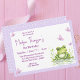 Ribbit, ribbit! Celebre o aniversário de 5 da sua princesa em estilo com nosso charmoso Convite de festas de Sapos. Este adorável convite captura o capricho e a alegria de uma cesta de aniversário temática de sapo, perfeita para o seu pequeno e os seus amigos para salto num dia de celebrações cheias de diversão. Apresentando uma ilustração encantadora de um sapo alegre rodeado por almofadas de lírio, este convite define o palco para uma memorável extravagância de aniversário. As cores vibrantes e o design lúdico irão certamente capturar a imaginação dos seus jovens convidados, incentivando-os a se juntarem às festividades.