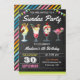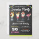 Incomode seus convidados com este convite colorido de festa de aniversário, com sundaes bonitinhos de sorvete com tipografia moderna, sobre um fundo de quadro. Basta adicionar os detalhes do seu evento neste modelo fácil de usar para torná-lo um convite de tipo único. Sacudir a placa para revelar um padrão colorido de listras na parte traseira da placa.
