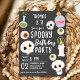 Prepare-se para diversão assustadora com os convites de festas de aniversários de Halloween de nossas crianças brincalhonas! Perfeito para pequenos fantasmas e goblins, estes convites são cheios de vibrações bonitinhas e assustadoras para excitar seus convidados. Personalize com os detalhes do seu partido e prepare-se para uma noite de trapaça ou tratamento, fantasias e diversão mágica. Quer seja abóboras, doces, ou surpresas assustadoras, este convite dá o tom para uma inesquecível festa de aniversário de Halloween! Perfeito para crianças de todas as idades. Boo memórias esperam!