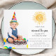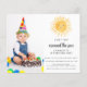 Você está planejando uma primeira festa de aniversário de um garoto? Este belo convite orçamentário é decorado com uma aquarela amarela sorrindo sol e tipografia de na moda. Facilmente personalizável com sua foto e detalhes. Original Watercolor © Michele Davies.