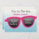 Divertido no Sol! Este convite tem um fundo azul que desaparece. Há grandes óculos escuros cor-de-rosa através do convite. Na parte preta dos óculos você personaliza o convite com as informações da sua festa. Veja nossos muitos outros produtos e designs em nossa loja.