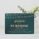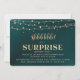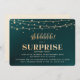 Elegante convite de aniversário surpresa adulta com fundo negro e sotaques de estrelas douradas .Text diz " Shhh! É UMA FESTA DE ANIVERSÁRIO SURPRESA" Todo o outro texto é personalizado para o seu partido.