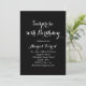 Este convite de aniversário surpresa está sobre um fundo preto clássico e pode facilmente ser personalizado a qualquer ano. Se forem necessários itens de coordenação adicionais para o seu evento, entre em contato conosco em prettyfancyinvites@gmail.com com sua solicitação.