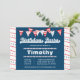 Este convite para festas de aniversário de meninos 5x7 tem um tema divertido de beisebol vermelho, branco e azul! No fundo, há uma faixa vermelha e um padrão de pontos com estrelas marinhos azuis. No topo, há dois banners de bunting azul vermelho, branco e marinho. No meio, há duas fileiras de baseball. A Festa de aniversário é escrita em uma fonte divertida de esportes na direção do topo, e você pode personalizar todas as informações da festa abaixo.