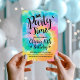 Aproveite este convite de aniversário de tingimento perfeito para qualquer idade! É a maneira perfeita de convidar convidados para a festa de aniversário do tingimento do seu filho. Este convite apresenta um fundo de espiral de corante de gravata arco-íris com belos textos de script.