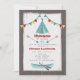 Um convite festa de aniversario de meninas com um tema de acampamento rústico. O Invite tem uma ilustração de uma ponta de turquesa com design de fêmur no topo e uma canoa de turquesa no fundo. Convidar também apresenta bunting no topo e um fundo inspirado em madeira. Personalize o texto com detalhes da sua ocasião.