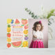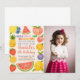 Aumente as vibrações tropicais com este convite de aniversário divertido e frutífero! Apresentando ilustrações lúdicas de melancia, abacaxi e citros com plasmas de cor tropical, este convite é perfeito para festas de piscina, aniversários de verão ou celebrações de temas lúanos. Totalmente personalizável para combinar seu evento e dar vida à diversão do verão!