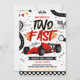Apertem os cintos! Seu pequeno está fazendo dois anos. Este convite de aniversário de carro de corrida 'Two Fast' apresenta gráficos de corrida elegantes e cores vibrantes, perfeito para uma celebração de alta velocidade. Prepare-se para ligar os motores!