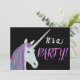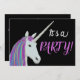 Convite de aniversário do Unicórnio Um convite único e colorido de unicórnio que se destaca do resto com o cabelo arco-íris no unicórnio contra fundo preto. Detalhes da festa com fontes elegantes e você pode personalizar se quiser. Personalize/personalize este convite se desejar usar o modelo de preenchimento fácil disponível. Você pode mudar de palavras e, em vez de Convite de aniversário, você pode personalizar para um ficar bem ou pensar se você fizer um cartão.