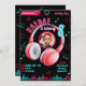 Celebre o aniversário do seu filho com este convite temático de música. Adicione sua foto e detalhes da festa. Preto, Azul e Rosa.