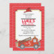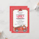 O convite de aniversário do caminhão de bombeiros apresenta um caminhão de bombeiros e o chapéu de bombeiro sobre um fundo de tijolos. Entre em contato conosco se precisar deste design aplicado a um produto específico para criar um item de coordenação! Muito obrigado por ver um DoodleLulu por 2 insetos de design de june!