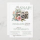 Este convite de aniversário para o tema da fotografia apresenta uma câmera estilo vintage com um elegante design floral.