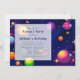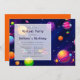 Convite de aniversário virtual com um tema de espaço personalizável para suas especificações.