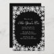 Flocos de neve brancos e brilhantes em um fundo preto da meia-noite decoram o Convite de festas de Ano Novo. Se forem necessários itens adicionais nesta coleção, entre em contato conosco em prettyfancyinvites@gmail.com com sua solicitação.