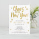Convite de Ano Novo 'Tô brindando ao Ano Novo' em brilho dourado cintilante com estrelas em um fundo branco. Personalize a cor do fundo se desejar e adicione todos os seus detalhes para informar as pessoas sobre o seu evento!