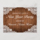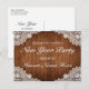 Convite de cartão postal para festa de Ano Novo. Estilo rústico com fundo de tábuas de madeira e decoração de renda branca. Mais itens estão disponíveis neste estilo em nossa loja. Você pode editar o design ainda mais, alterar cores, fontes e adicionar texto extra clicando no link "personalizar ainda mais".