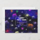 O fogo funciona e as estrelas num fundo de vidro azul profundo.Feliz ano novo. Você é convidado para celebrar conosco pode ser personalizado com a data de Ano Novo.