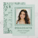 Celebre e compartilhe a grande conquista do seu graduado em estilo ousado e divertido com este moderno anúncio de foto de formatura com doodle caprichoso verde e convite para festa. A frente apresenta a foto do seu graduado dentro de uma moldura desenhada à mão encantadora, personalizada com o nome dele, escola ou faculdade e ano de formatura - criando um item significativo para amigos e familiares.